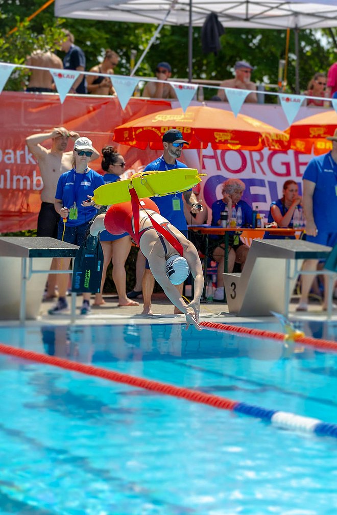 Im Feld der besten deutschen Rettungsschwimmer*innen konnte sich mit den gleichen Disziplinen Rolf Neubert (AK 65) Platz 9 von 20 Teilnehmern behaupten, Elisabeth Rahn-Kossendey (AK 60) kam auf Platz 7